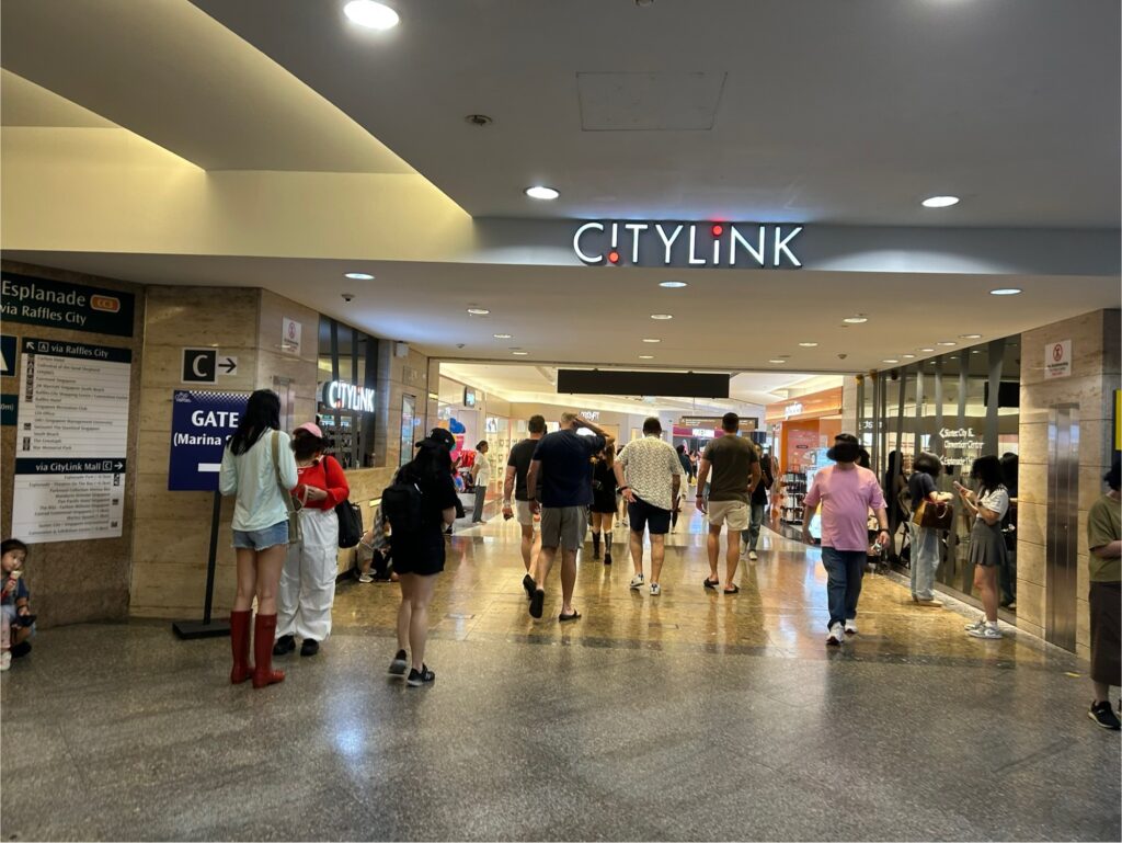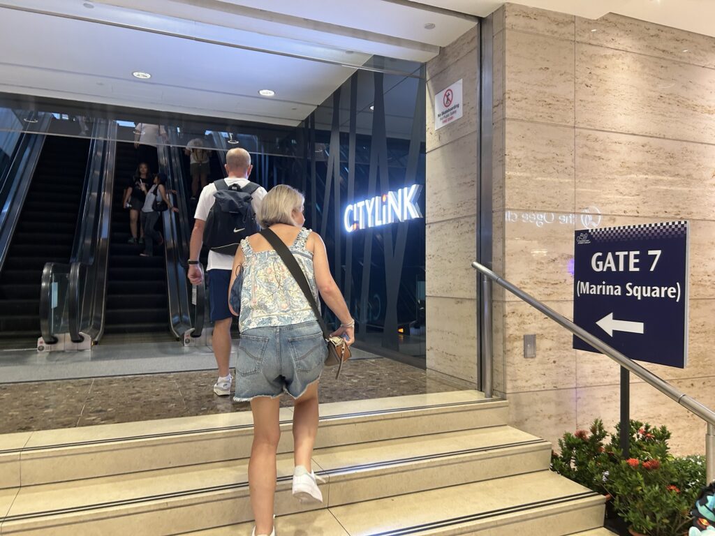 地上に出たらさらにもう一つエスカレーターを上り、Marina Squareの入り口に繋がる橋を渡ります。