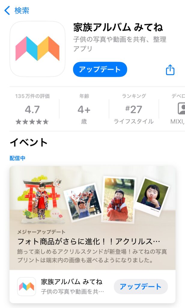 「みてね」とは、家族アルバムアプリのことです。アプリにアップロードした写真を家族と共有することができます。