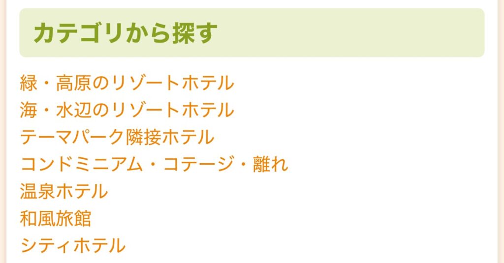 宿ごとにそれぞれ特色があり、このようにカテゴリわけされていました。