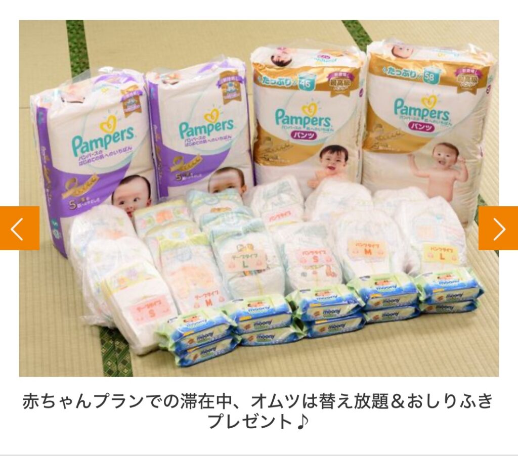 案外おむつはかさばるので、お宿で用意してくれるのとても助かる!これなら何泊でも身軽に行って帰って来れますね。