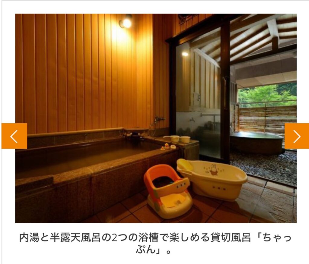 赤ちゃんと貸切お風呂に入れるの?!今回、一時帰国時に予約したお宿はウェルカムベビーではなかったので、赤ちゃんは部屋風呂かなぁ…と思っていたのでこんなお宿があるなんて目から鱗!!