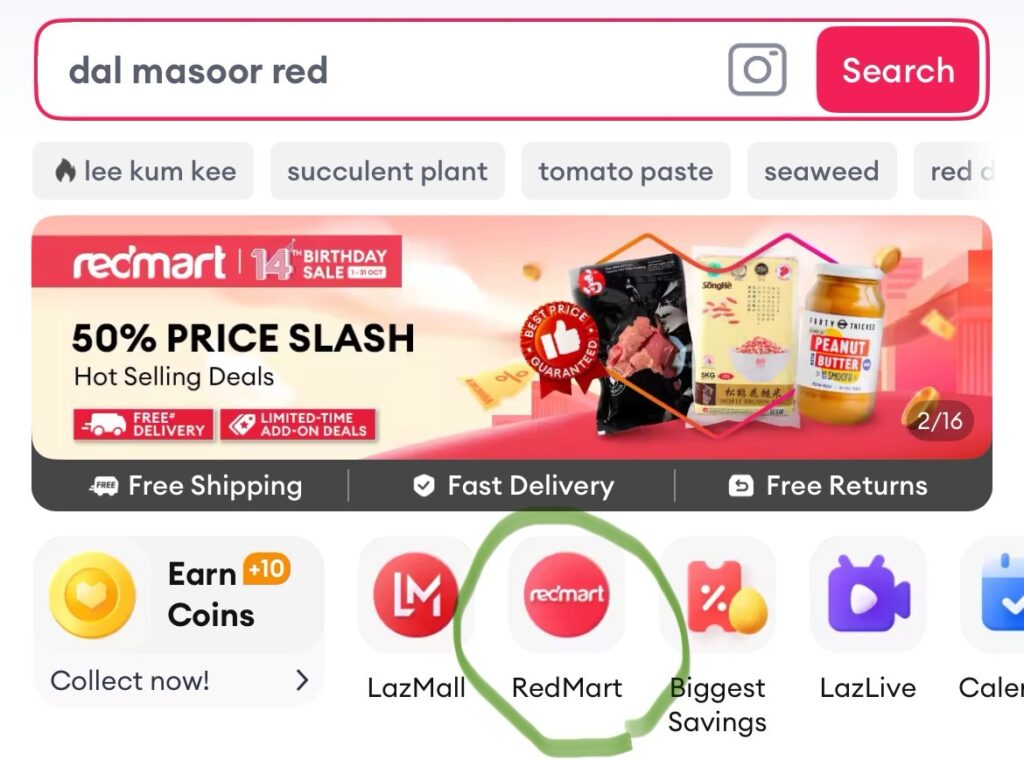 シンガポールの2大ショッピングサイトの一つ、Lazadaのネットスーパーのことです。Lazadaアプリの中のここから使うことができます。