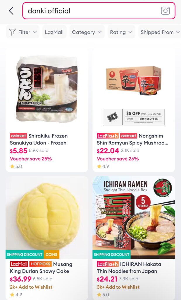 “Donki”と入れると確かにドンキで売っているような商品がいくつか出てきました。値段はドンキで売っている値段と遜色ないように見えます。