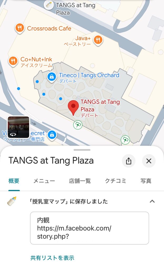 授乳室の口コミ情報をもとに作成したもので、Google mapで簡単に授乳室の場所を確認することができます。
