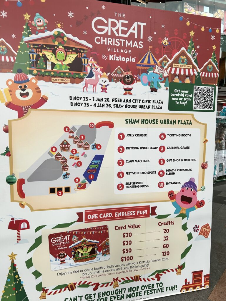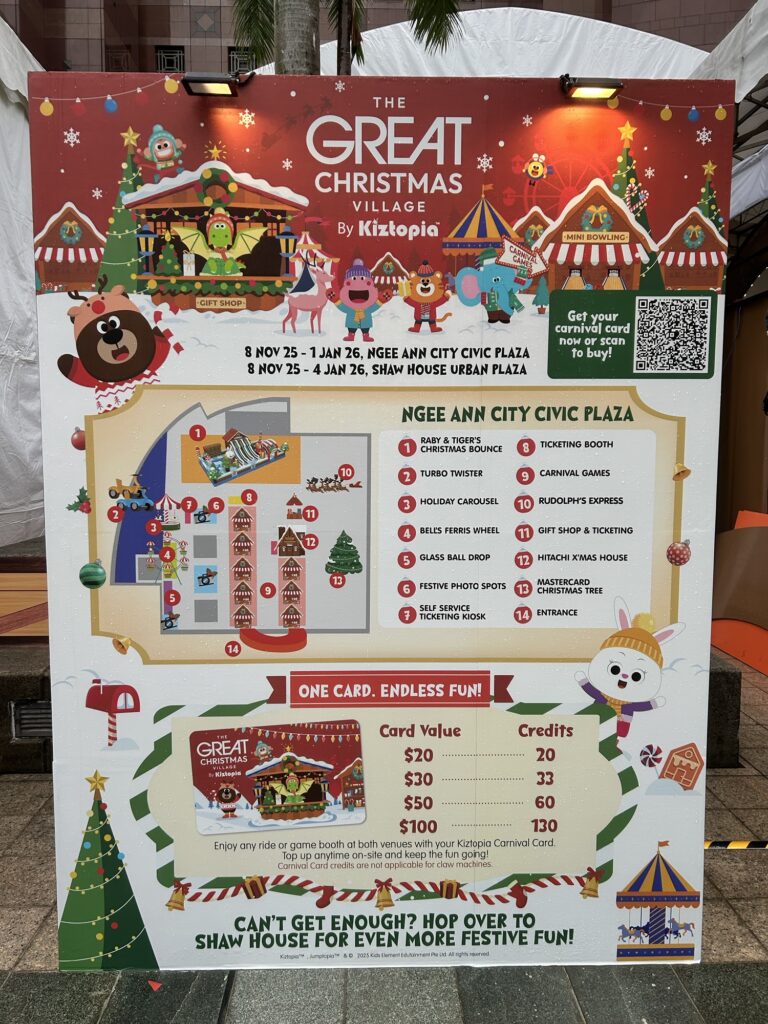 こちらはNgee Ann Cityの前にあるクリスマスビレッジです。サイズ感はShaw Houseよりさらに大きく、子どものゲームだけではなくディナーを楽しめそうな屋台や雑貨などのマーケットが並んでいて、家族みんなで楽しめる!
