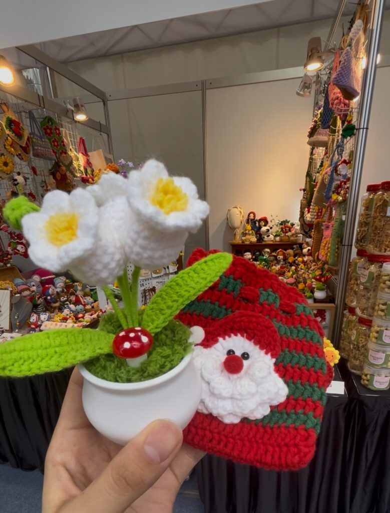 可愛すぎて思わず手編みのグッズをお持ち帰り!サンタさんのキュートな表情にやられました。