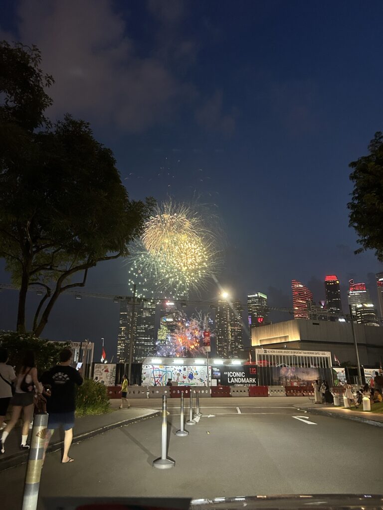 ご覧の通りマリーナベイから少し距離があるので、花火のサイズは小さめかと思います。ただ、マリーナベイサンズ越しに見る花火はシンガポールでしか見れない花火が見れるのではないでしょうか。