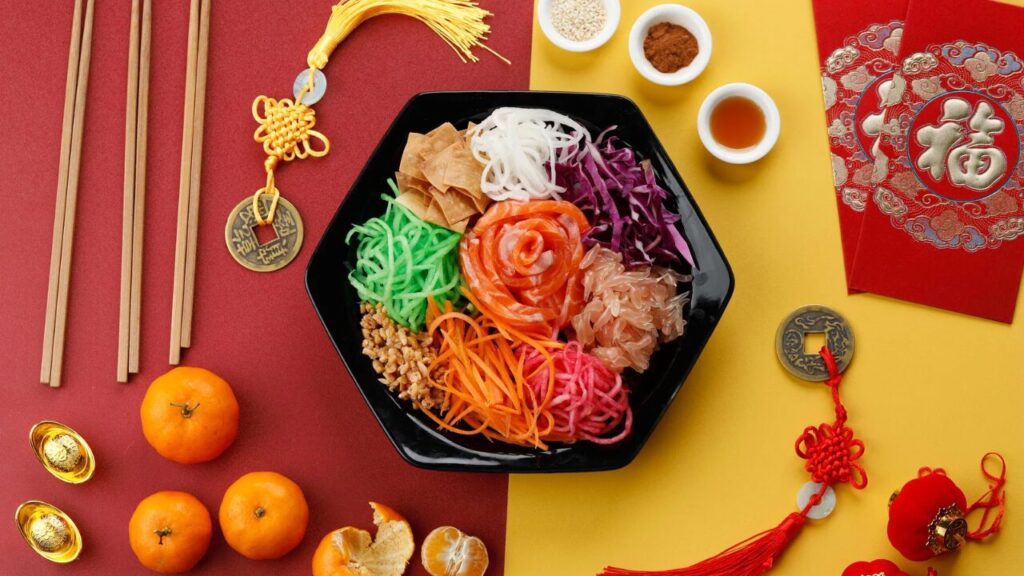 Yu shengとは旧正月のお祝いに食べる料理です。別名をProsperity Tossといい、その名の通り今年一年の繁栄を祈りながら食べる料理です。ホテルのレストランなどにいくと、スタッフの人が各料理の意味を説明してくれて(日本のおせちみたいにそれぞれに意味があるらしい。)、最後に掛け声(なんて言ってたか聞き取れなかった)をかけてくれるのでそれに合わせて「Prosperity!(繁栄)」や「Happy(幸せ)」などその年に手に入れたいものを各々が口にしながら箸で料理を混ぜます。その時、Tossというだけあって高ーく持ち上げてパッと離し、なるべく高く持ち上げて混ぜるのが良いそうです。旧正月のレストランではよく見かける光景ですし、仲間と一緒に注文してみてもいいですね。
