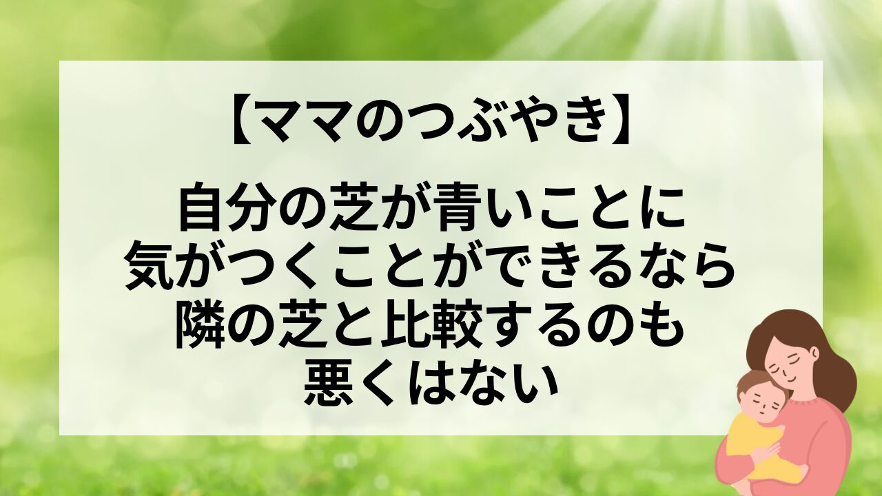 今日は0歳息子と向き合う中で思ったこと、「自分の芝が青いことに気がつくことができるなら、隣の芝と比較するのも悪くない」について書きたいと思います。