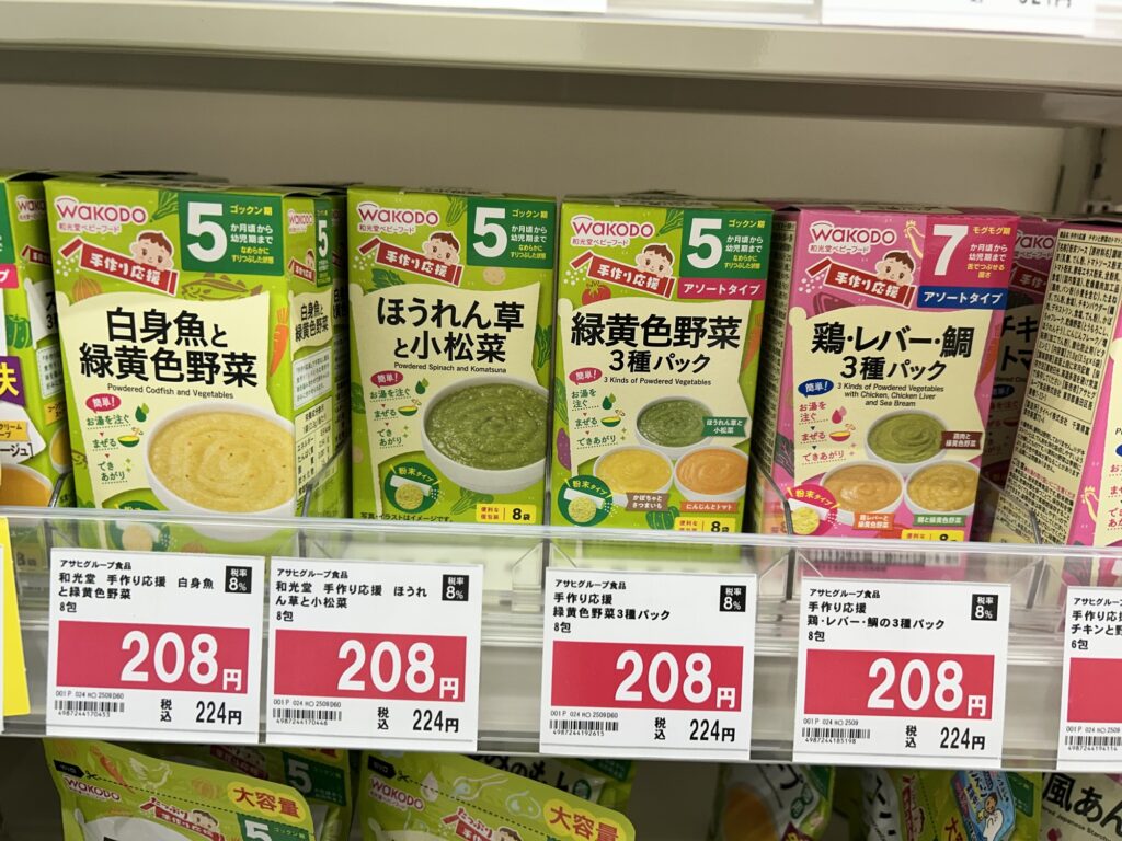 和光堂が離乳食界隈ではバリエーションが多く使いやすいそうで、助産師さんからおすすめしてもらいました。